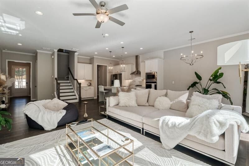 Glamorous townhome in sought after Harlow West. The gated community of Harlow West offers resort-style amenities featuring a clubhouse, two pools with cabanas, tennis & pickleball courts, dog park, green spaces and walking trails. This 3 bed 2.5 bath home boasts tons of natural light, open floor plan and easy low maintenance living. Gourmet kitchen with oversized quartz island, SS appliances, gas cooktop and dry bar. Kitchen overlooks spacious living room with views to the beautifully manicured private fenced backyard. Upper level oversized primary suite. Spa like primary bath includes dual sinks, soaking tub, frameless glass shower and walk in closet. 2 secondary bedrooms and full bath. Just minutes to Downtown Roswell, Downtown Alpharetta, Avalon, GA-400 and within walking distance to Ameris Bank Amphitheatre. This immaculately maintained home is turnkey and ready for the most meticulous buyer.